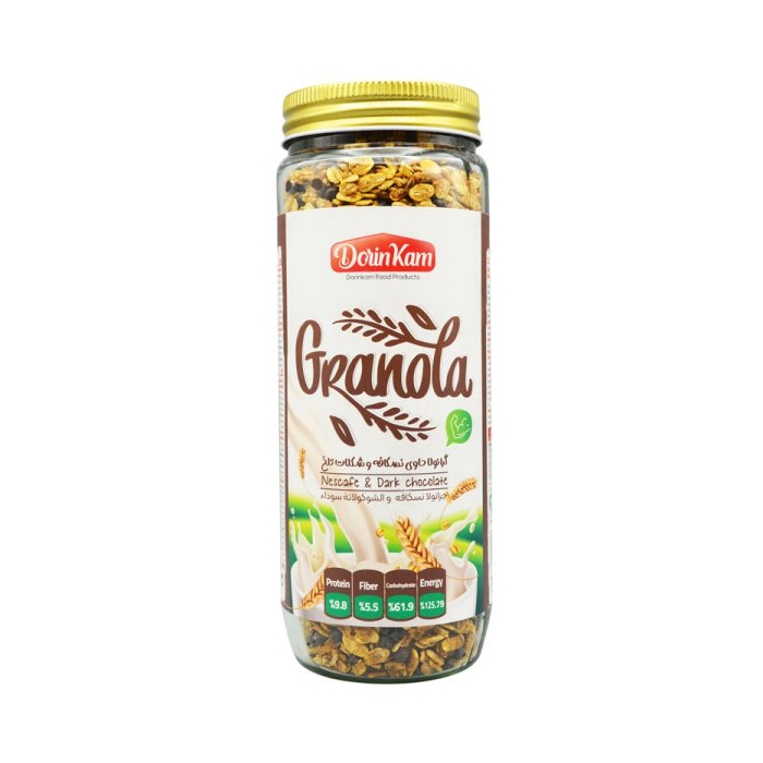 گرانولا شیشه ای درین کام طعم کشمش و کنجد سیاه ۳۸۰ گرمی