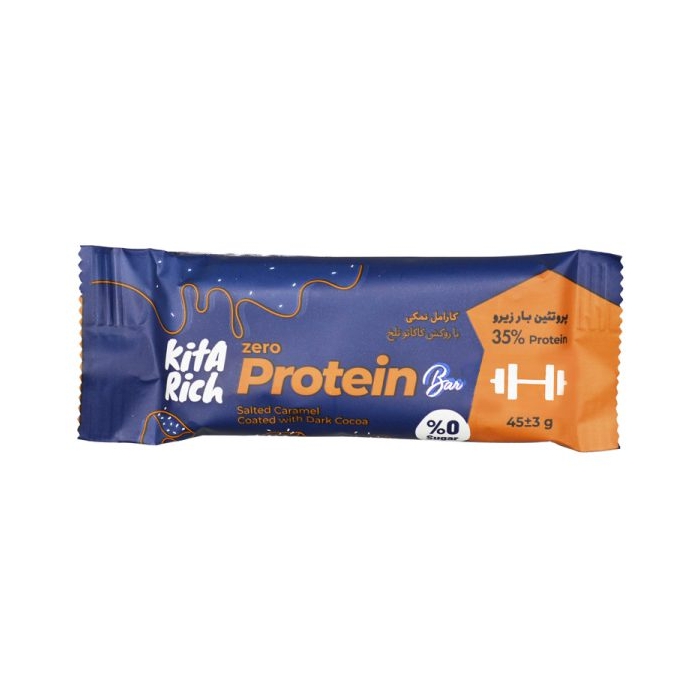 شکلات پروتئین بار کیتاریچ کارامل نمکی با روکش کاکائو تلخ ۴۵ گرمی