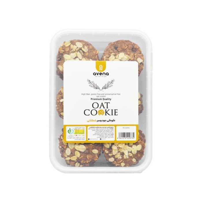 کوکی جو دوسر با طعم شکلاتی وزن: 450 گرم تعداد: 18 عدد کوکی در یک بسته میان وعده سالم یا یک صبحانه‌ی خوشمزه و مغذی دارای ارزش غذایی بالا دارای 78.1 کیلوکالری و قند 3.92 گرم بدون مواد افزودنی و کلوتن 100% طبیعی سرشار از فیبر، ویتامین و مواد معدنی فواید مصرف کوکی جو دوسر شکلاتی: کاهش وزن تنظیم قند خون تقویت سیستم ایمنی بدن تقویت پوست و مو کاهش بیماری های قلبی و عروقی جلوگیری از پوکی استخوان جلوگیری از یبوست قابل استفاده به همراه چای، شیر گرم و سرد، آبمیوه و… مناسب برای ورزشکاران و عموم افراد نگهداری در محل خشک و خنک دارای تاریخ انقضای معتبر