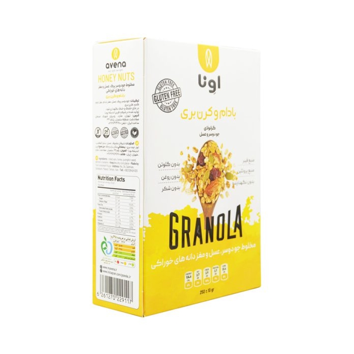 گرانولا اونا طعم بادام و کرن بری سری K بدون گلوتن ۲۵۰ گرمی
