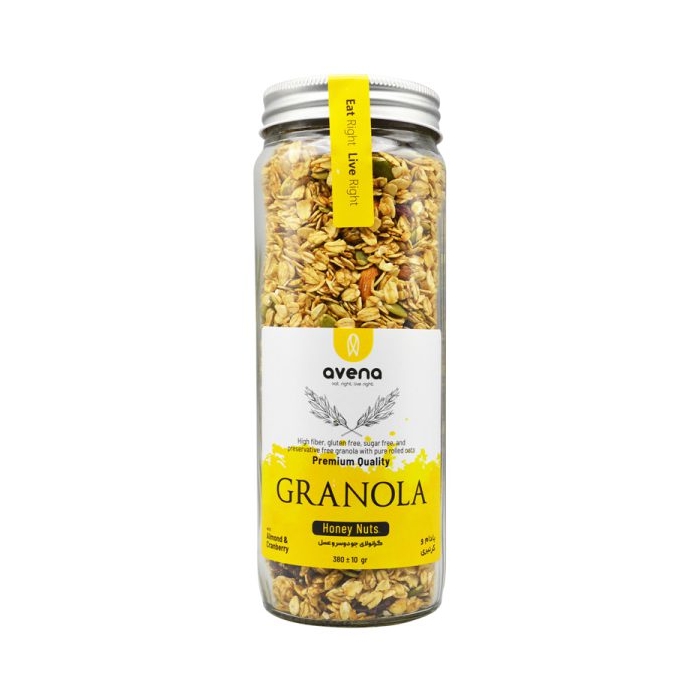 گرانولای شیشه ای با طعم بادام و کرنبری وزن: 380 گرم میان وعده سالم یا یک صبحانه‌ی خوشمزه و مغذی دارای ارزش غذایی بالا دارای 124.6 کیلوکالری و قند 5.89 گرم دارای 6.7% پروتئین و سرشار از فیبر بدون مواد افزودنی و بدون گلوتن 100% طبیعی فاقد هرگونه روغن و شکر فواید مصرف گرانولای بادام و کرنبری: کاهش کلسترول خون کاهش وزن سیری بلند مدت تنظیم قند خون تقویت سیستم ایمنی بدن مبارزه با سرطان و بهبود عملکرد دستگاه گوارش بهترین زمان مصرف: صبحانه، عصرانه و قبل از ورزش قابل ترکیب با آب و شیر قابل استفاده به همراه ماست و تکه های میوه قابل استفاده به تنهایی به عنوان تنقلات مناسب برای ورزشکاران و عموم افراد تهیه آسان و سریع دارای تاریخ انقضای معتبر