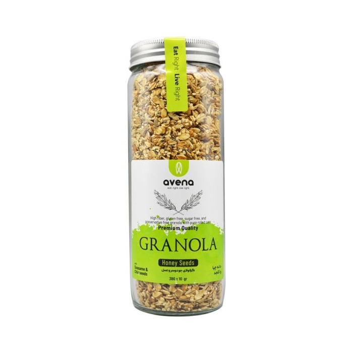 گرانولای شیشه ای با طعم دانه چیا و کنجد وزن: 380 گرم میان وعده سالم یا یک صبحانه‌ی خوشمزه و مغذی دارای ارزش غذایی بالا دارای 129.8 کیلوکالری و قند 4.98 گرم دارای 7.1% پروتئین و سرشار از فیبر بدون مواد افزودنی و گلوتن 100% طبیعی فاقد هرگونه روغن و شکر فواید مصرف گرانولای دانه چیا و کنجد: کاهش کلسترول خون کاهش وزن سیری بلند مدت تنظیم قند خون تقویت سیستم ایمنی بدن مبارزه با سرطان و بهبود عملکرد دستگاه گوارش بهترین زمان مصرف: صبحانه، عصرانه و قبل از ورزش قابل ترکیب با آب و شیر قابل استفاده به همراه ماست و تکه های میوه قابل استفاده به تنهایی به عنوان تنقلات مناسب برای ورزشکاران و عموم افراد تهیه آسان و سریع دارای تاریخ انقضای معتبر
