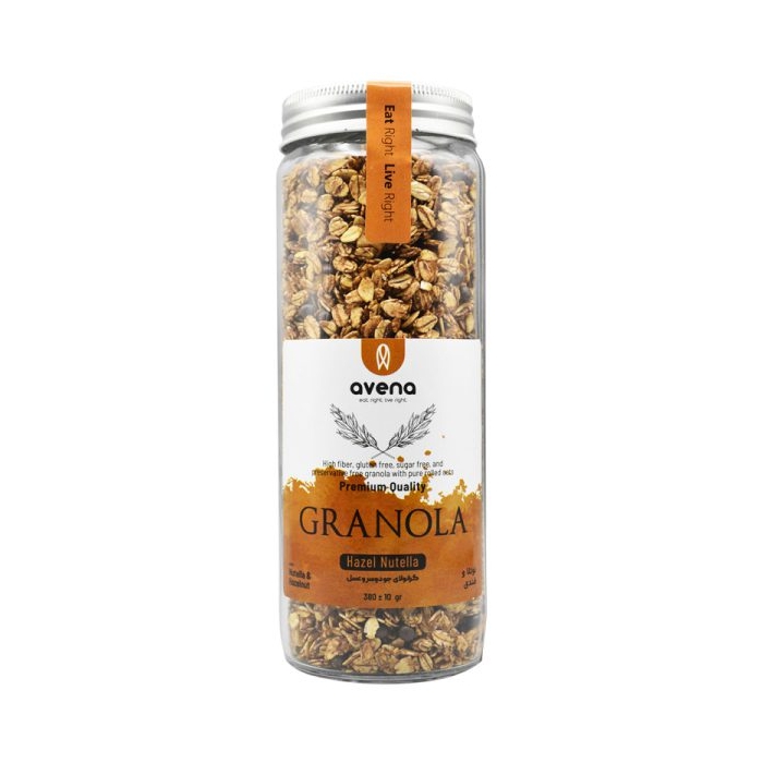 گرانولای شیشه ای با طعم نوتلا و فندوق وزن: 380 گرم میان وعده سالم یا یک صبحانه‌ی خوشمزه و مغذی دارای ارزش غذایی بالا دارای 134.2 کیلوکالری و قند 5.49 گرم دارای 6.5% پروتئین و سرشار از فیبر بدون مواد افزودنی و گلوتن 100% طبیعی فاقد هرگونه روغن و شکر فواید مصرف گرانولای نوتلا و فندوق: کاهش کلسترول خون کاهش وزن سیری بلند مدت تنظیم قند خون تقویت سیستم ایمنی بدن مبارزه با سرطان و بهبود عملکرد دستگاه گوارش بهترین زمان مصرف: صبحانه، عصرانه و قبل از ورزش قابل ترکیب با آب و شیر قابل استفاده به همراه ماست و تکه های میوه قابل استفاده به تنهایی به عنوان تنقلات مناسب برای ورزشکاران و عموم افراد تهیه آسان و سریع دارای تاریخ انقضای معتبر