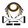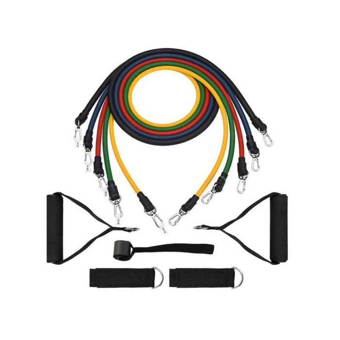 جنس: کش لاتکس با مقاومت پایدار دارای بسته ۵ عددی دارای 5 کش با مقاومت های متفاوت: 10 پوند: 4 کیلوگرم 15 پوند: 6 کیلوگرم 20 پوند: 9 کیلوگرم 25 پوند: 11 کیلوگرم 30 پوند:  13 کیلوگرم محتویات پکیج : پنج کش مقاومتی دو دستگیره دو پابند یک گیره پشت درب کیسه حمل دارای کش بسیار مقاوم با کاریبن های فلزی دارای مقاومت بالا در برابر پارگی در استفاده طولانی مدت قابل استفاده برای باشگاه و منزل قابل استفاده برای انجام انواع تمرینات ورزشی و بدنسازی قابل استفاده برای ورزشکاران امکان انجام بیش از 100 مدل حرکت منحصر به فرد