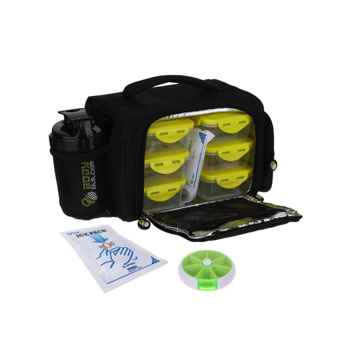 جنس: ترکیب برزنت و فوم وارداتی: ساخت کشور چین ابعاد: 17*20*31 سانتی متر دو حالت استفاده: دستی و رو دوشی دارای 6 عدد ظرف غدا ابعاد ظرف غذا: 4*11*16 جنس ظرف غذا: پلاستیک فشرده درجه 1 دارای دو عدد پک یخ دارای یک عدد شیکر سه تیکه جنس شیکر: پلاستیک فشرده درجه 1 ابعاد شیکر: 8*9*24 دارای یک عدد جا قرص ( 7 قسمت مجزا برای انواع قرص و کپسول) دارای یک لایه آستر ضد آب در داخل کیف دارای پارچه و دوخت بسیار با کیفیت دارای جنس مقاوم در برابر رطوبت دارای یک عدد جیب توری در اطراف کیف دارای یک عدد جیب زیپ دار در اطراف کیف دارای یک عدد جیب توری در داخل کیف دارای بند رو دوشی قابل تنظیم سایز مناسب برای ورزشکاران و عموم افراد (خانم‌ها و آقایان) مناسب برای باشگاه، سفر، روزمره و… دارای طرح Body Builder قابل شسشتو