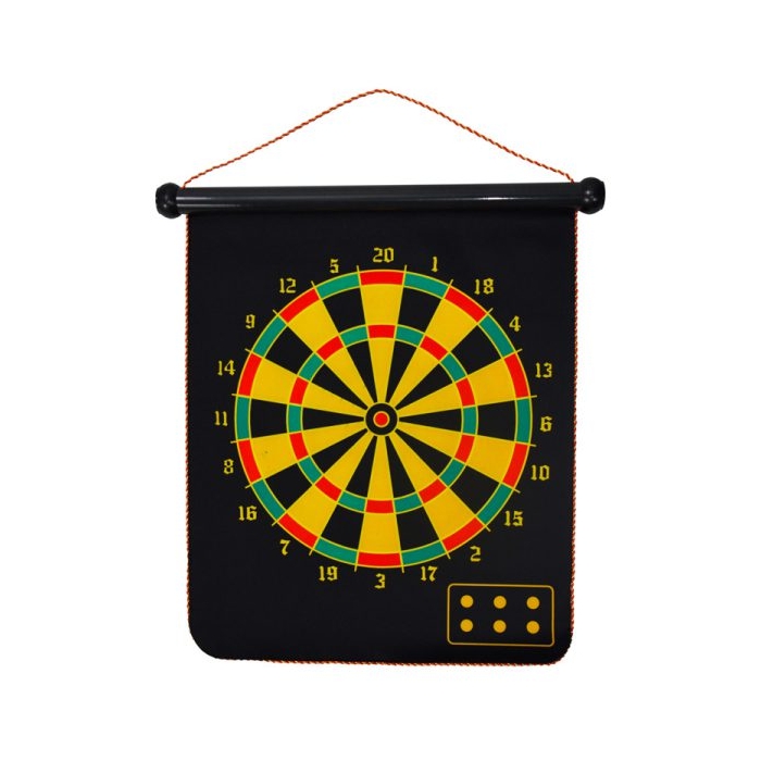 جنس تخته: فوم و آهن ربا جنس دارت: پلاستیک ابعاد: 38*48 سانتی متر وارداتی: ساخت کشور چین درجه بندی: دایره ای نوع سیبل: دو طرفه دارای 6 عدد تیر دارت مگنتی دارای جنس و کیفیت بسیار بالا دارای بند جهت آویز کردن حد فاصل مناسب از دارت 237 سانتی متر مناسب برای تقویت عضلات دست مناسب برای تمرین در منزل مناسب برای افراد 6+ سال مناسب برای ورزشکاران و عموم افراد دارای طرح Magnet DartBoard