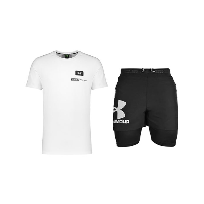ست رکابی بدنسازی و شلوارک ورزشی مردانه آندر آرمور مدل راک فسفری
