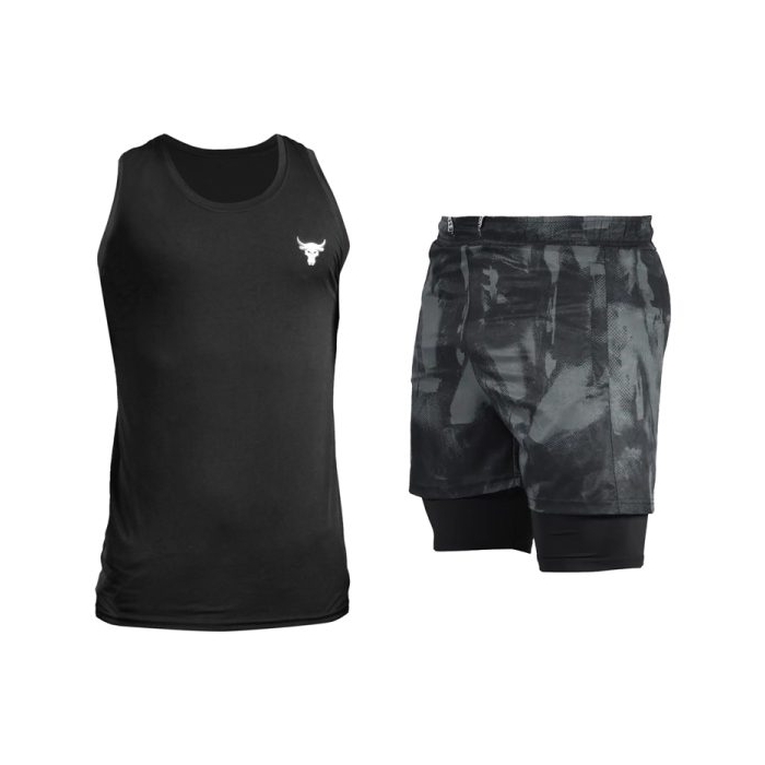 ست رکابی بدنسازی و شلوارک ورزشی مردانه آندر آرمور مدل راک فسفری