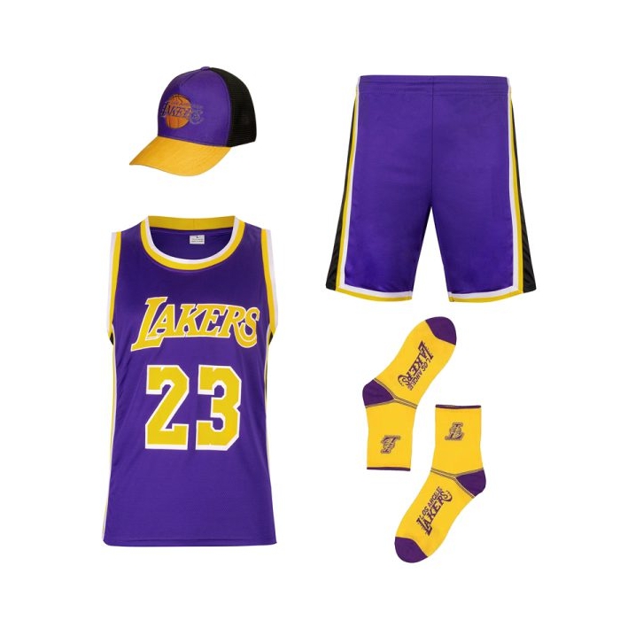ست ورزشی مردانه رکابی و شلوارک بسکتبالی لیکرز مدل GNV-NO23 مشکی
