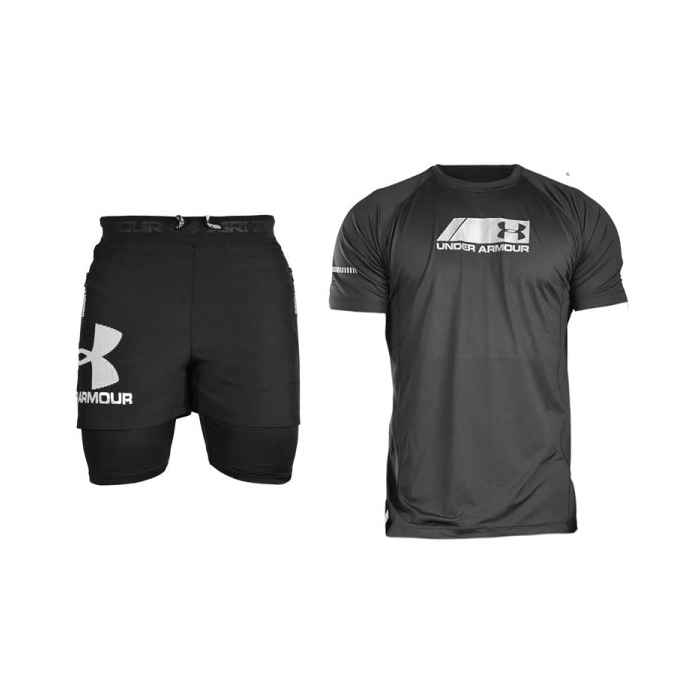 ست رکابی بدنسازی و شلوارک ورزشی مردانه آندر آرمور مدل راک فسفری