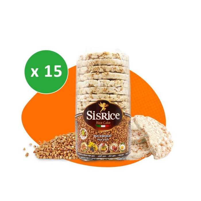 پکیج سیس رایس کیک رژیمی طعم گندم سیاه کارتن ۱۵ بسته ای