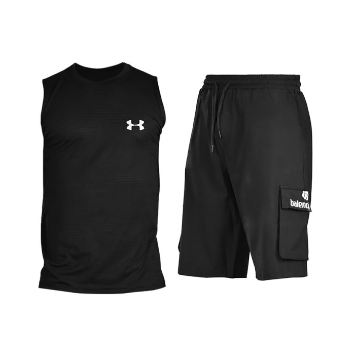 ست رکابی بدنسازی و شلوارک ورزشی مردانه آندر آرمور مدل راک سرمهای