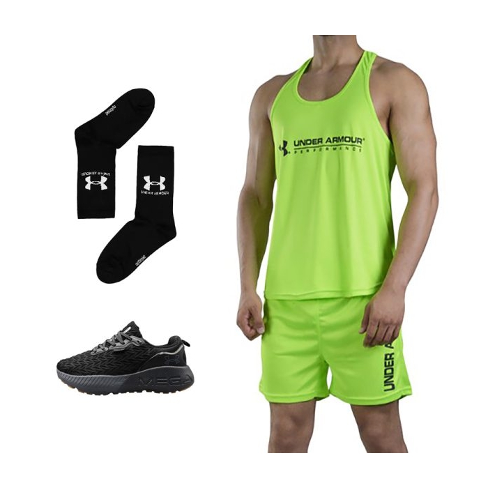ست رکابی بدنسازی و شلوارک ورزشی مردانه آندر آرمور مدل راک فسفری