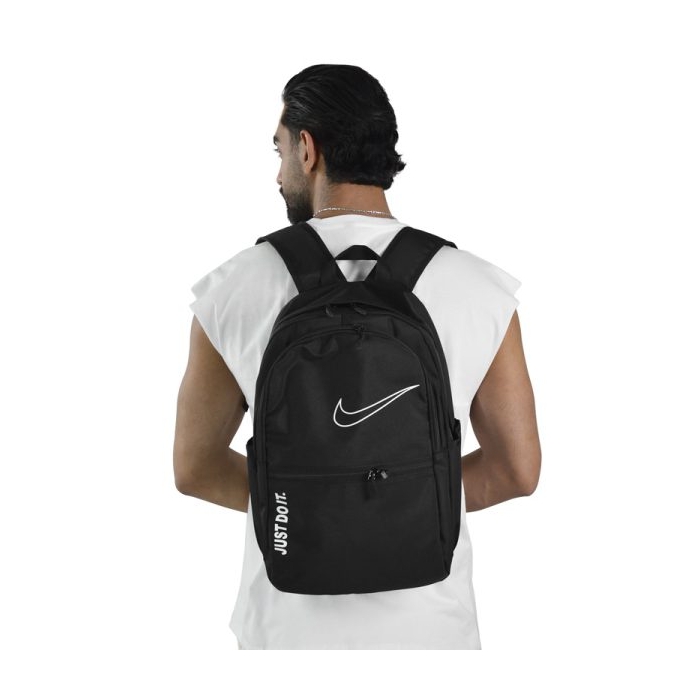 جنس: ترکیبی از پلی استر و نخ ابعاد: 14*32*46 سانتی متر حجم داخلی: 21 لیتر دو حالت استفاده: دستی، رو دوشی توری بودن پشت کوله: جهت جلوگیری از تعریق دارای پارچه و دوخت بسیار با کیفیت دارای یک لایه آستر داخلی دارای یک محفظه بزرگ دارای محفظه جداگانه برای لب تاب، پوشه و… دارای دو عدد جیب زیپ دار در جلو کوله دارای یک عدد جیب زیپدار در پشت کوله دارای دو عدد جیب در اطراف کوله (مناسب آب، شیکر و…) دارای جنس مقاوم در برابر رطوبت دارای بند رو دوشی قابل تنظیم سایز قابل استفاده برای ورزشکاران و عموم افراد (خانم‌ها و آقایان) قابل استفاده برای باشگاه، سفر، روزمره و… قابل شستشو دارای طرح Nike
