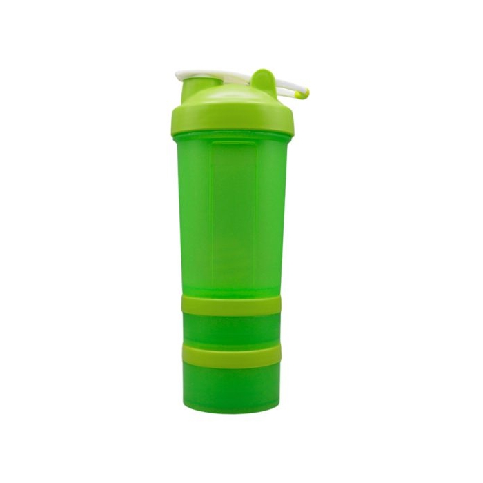جنس: پلاستیک فشرده درجه 1 عاری از هرگونه مواد سمی (BPA FREE) شیکر سه تیکه: مخزن مایع و مخزن پودر و قرص ابعاد: 8*10*26 سانتی متر ظرفیت: 0.45 لیتر رنگ بدنه: مات نوع درب: ضامنی و پیچی دارای درب ضد نشت دارای چاپ و کیفیت بسیار بالا دارای فنر استیل جهت شیک و میکس بهتر محتویات دارای محفظه جدا قرص و جاپودر قابل استفاده برای ورشکاران و عموم افراد (خانم‌ها و آقایان) قابل استفاده در باشگاه، مسافرت، روزمره و…. قابل شستشو دارای رنگبندی