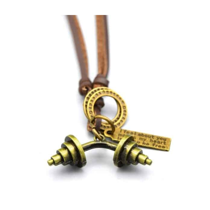گردنبند برنجی طرح دمبل خم بند چرم مدل ۲۲۶۱۰