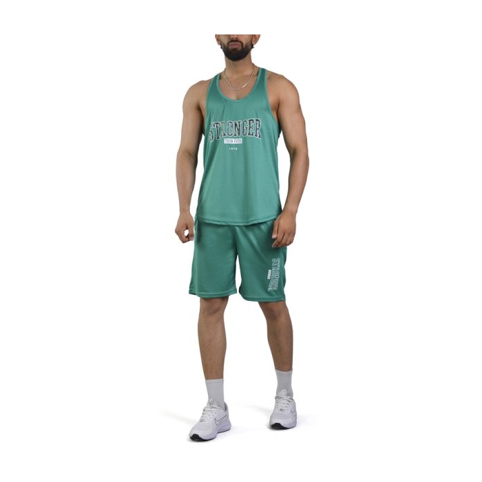 ست رکابی و شلوارک ورزشی مردانه استرانگ مدل PY-4C0438 سبز آدامسی تیره