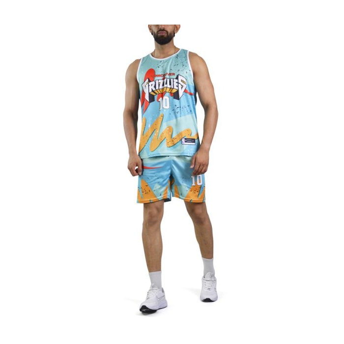 جنس: فلامنت سوزنی قواره: فیت نوع یقه‌: گرد نوع رکابی: حلقه ای قد شلوارک: کوتاه (بالای زانو) دارای فاق بلند دارای شلوارک کمر کش بند دار دارای پارچه ی نرم و راحت دارای طرح و چاپ با کیفیت دارای دوخت تمیز و با کیفیت طرح grizlies دارای سایز بندی راهنما سایز: آخرین عکس گالری هر محصول سایز مدل: قد: 190 سانتی متر وزن: 90 کیلوگرم سایز لباس: XL