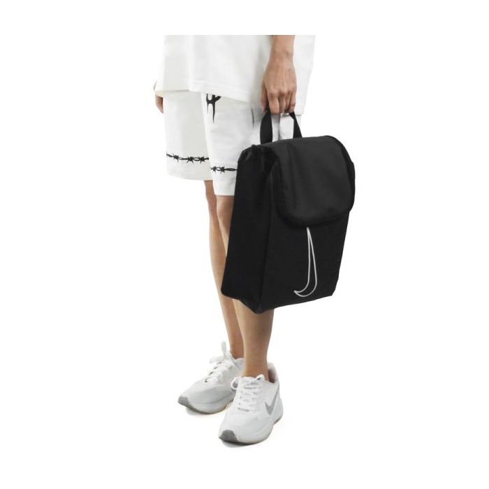 جنس: ترکیبی از پلی استر و نخ ابعاد: 9*23*38 سانتی متر حجم داخلی: 8 لیتر اسپرت: مناسب برای آقایان و خانم‌ ها قابل استفاده به یک صورت: دستی دارای یک جیب توری در پشت شوزبگ دارای یک جیب زیپدار در داخل شوزبگ دارای پارچه ضخیم و با کیفیت دارای دوخت بسیار با کیفیت دارای یک لایه آستر داخلی قابل حمل آسان و راحت قابل استفاده به عنوان کیف کفش قابل شست و شو طرح Nike