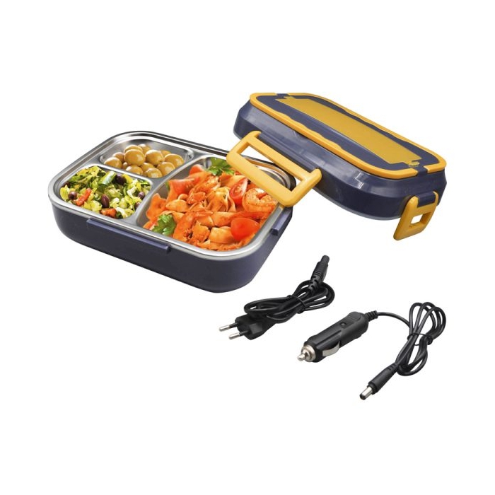 جنس : پلاستیک فشرده درجه 1 عاری از هرگونه مواد سمی (BPA FREE) وارداتی: ساخت کشور چین ابعاد: 12*20*27 سانتی متر ظرفیت کل: 1.5 لیتر قدرت: 40 وات ولتاژ: 220 ولت نوع درب: قفل دار دارای وزن و حجم کم دارای قاشق و چنگال استیل دارای دو کابل سیم برق و فندکی دارای دسته جهت حمل آسان و راحت دارای یک واشر جهت جلوگیری از نشت غذا دارای یک محفظه استیل جداگانه بزرگ سه تیکه (برنج، خورشت، سالاد و…) دارای یک محفظه جداگانه روی درب محصول جهت قرار دادن قاشق و چنگال هنگام شستشو در آب غوطه ور نشود طرح Lunch Box دارای رنگبندی