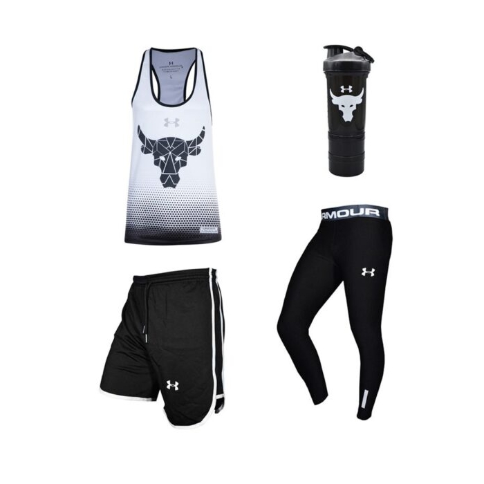 ست رکابی بدنسازی و شلوارک ورزشی مردانه آندر آرمور مدل راک فسفری