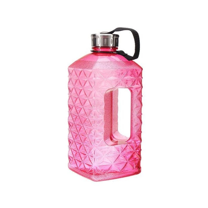جنس: پلاستیک شفاف بدون مواد سمی BPA FREE ظرفیت: ۲٫۲ لیتری درب آلمینیومی بدون نشتی دارای دستگیره جهت حمل آسان دارای بند جهت حمل راحت بدنه طرح الماس مناسب برای ورزش، مسافرت و… ابعاد: 11*27 سانتی متر دارای رنگ بندی
