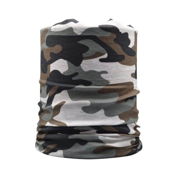 قابلیت تبدیل به دستمال گردن،هدبند و دستمال سر محافظ صورت از سرما و آفتاب جنس پلی استر قابل شست و شو مناسب ورزش و استفاده‌ی روزمره جنس کشی طرح چریکی ابعاد: ۴۵*۲۳ سانتی متر