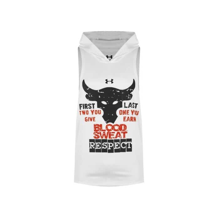 رکابی کلاهدار ورزشی مردانه آندر آرمور مدل PY-BLOOD SWEAT سفید