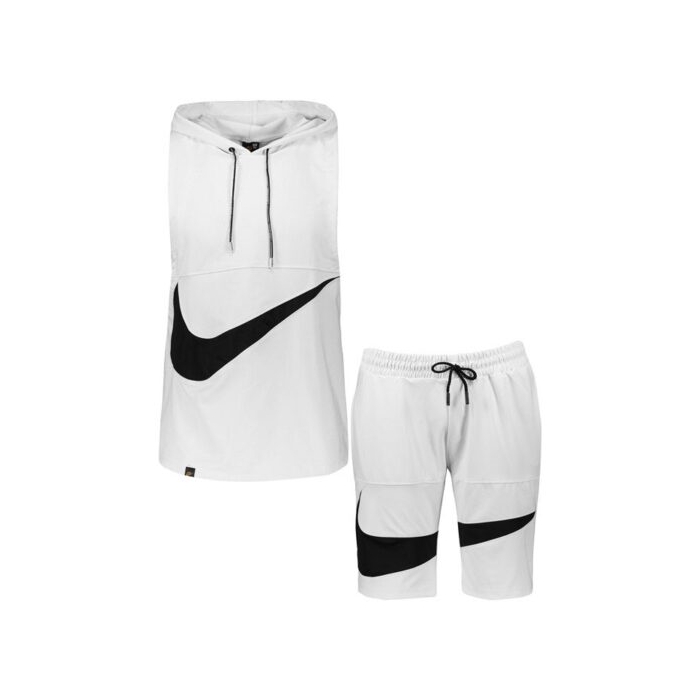 ست ورزشی رکابی کلاهدار و شلوارک نایک مدل PB-BLK chp سفید