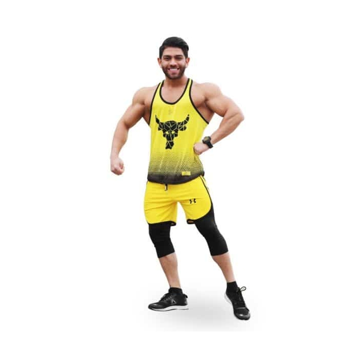 ست رکابی بدنسازی و شلوارک ورزشی مردانه آندر آرمور مدل راک فسفری