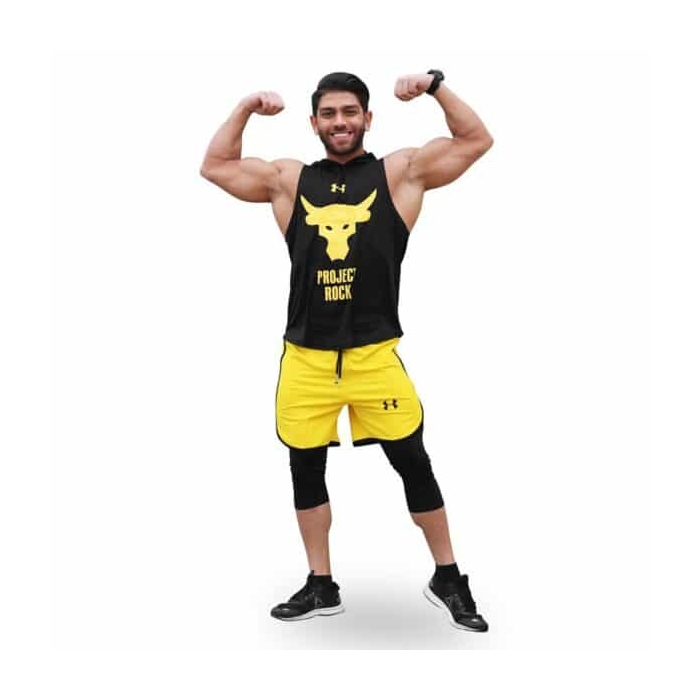 ست رکابی بدنسازی و شلوارک ورزشی مردانه آندر آرمور مدل راک فسفری
