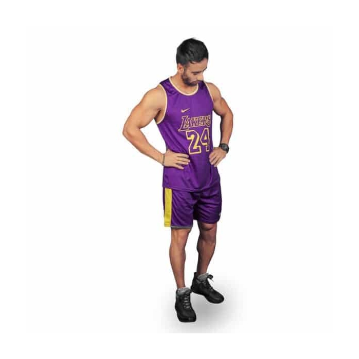 ست ورزشی مردانه رکابی و شلوارک بسکتبالی لیکرز مدل GNV-NO23 مشکی