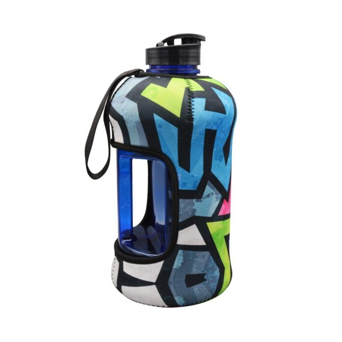 جنس: پلاستیک فشرده عاری از مواد سمی BPA FREE ظرفیت: 2.2 لیتر معادل 2200 میلی لیتر مقاوم در برابر ضربه (جنس انعطاف پذیر) ساخت چین وارداتی دارای بند جهت حمل راحت و آسان درب ضد نشت و واشر دار درب دو حالته: ساده و قمقمه ای دارای کاور نرم و ضخیم پلی استری کاور دو رو: یک رو رنگی و روی دیگر مشکی قابل استفاده هم با کاور و هم بدون کاور کاور قابل شستشو مقاومت در برابر ضربه در دوحالت را داراست طرح گرافیگی