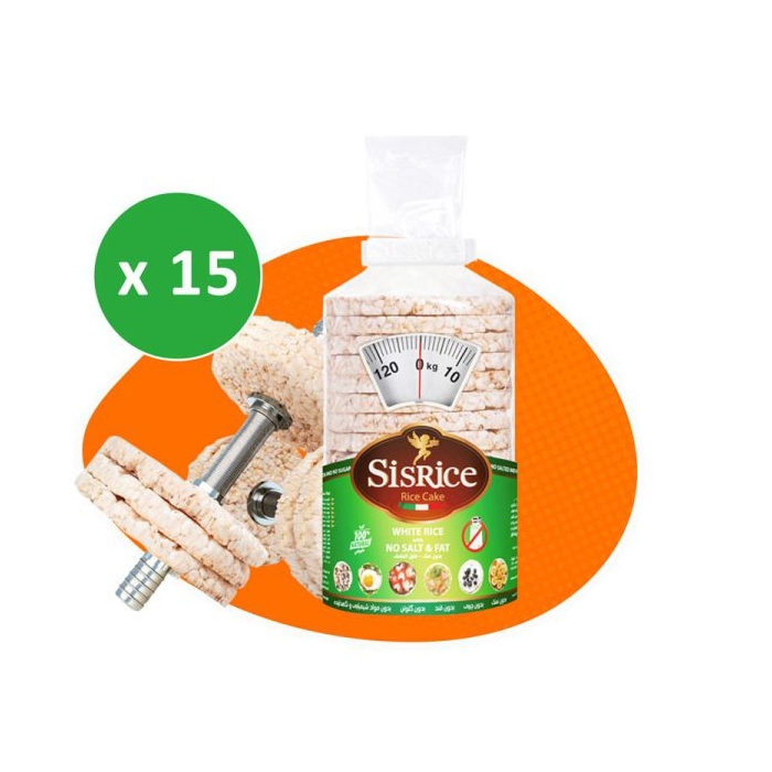 یک کارتن شامل 15 بسته رایس کیک 15 تایی هر قطعه 8 گرم (مجموعا 15 عدد *8 گرم = 120 گرم) مناسب برای افرادی که نیاز به مصرف کربوهیدارت سالم و رژیمی دارند مناسب ورزشکاران حرفه‌ای در دوران رژیم و بارگیری بهترین جایگزین نان، چیپس و اسنک های پر کالری خوش‌مزه و سالم غنی از کربوهیدرات با فیبر (با خاصیت سیر کننده بالا) بدون شکر، بدون چربی و بدون گلوتن بدون مواد نگهدارنده و مواد شیمیایی دارای سیب سلامت دارای تاریخ انقضا معتبر (به صورت هفتگی شارژ می‎‌‌‎شود)