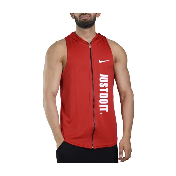 رکابی کلاه دار ورزشی مردانه نایک مدل PY-JDI زیپ دار قرمز