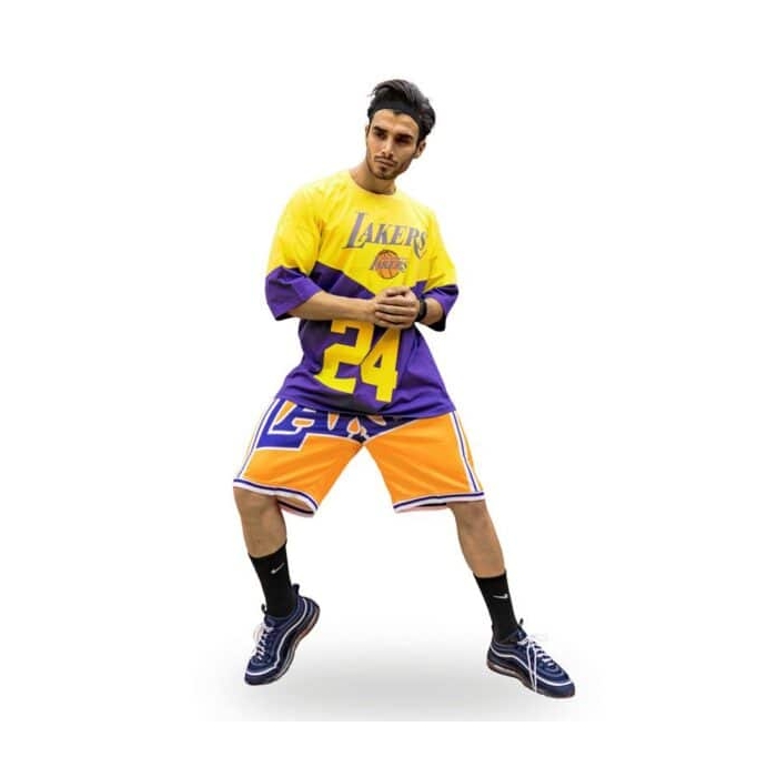 ست ورزشی مردانه رکابی و شلوارک بسکتبالی لیکرز مدل GNV-NO23 زرد
