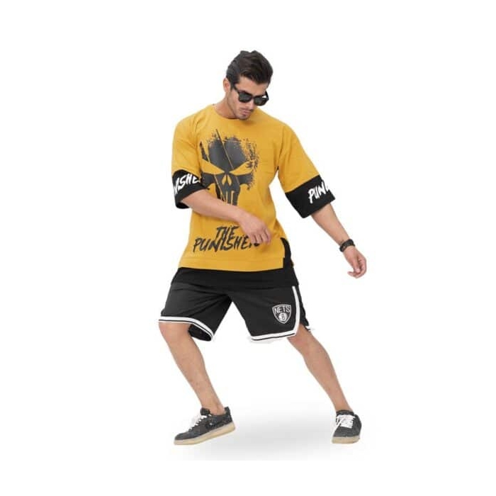 ست ورزشی مردانه رکابی و شلوارک بسکتبالی لیکرز مدل GNV-NO23 زرد