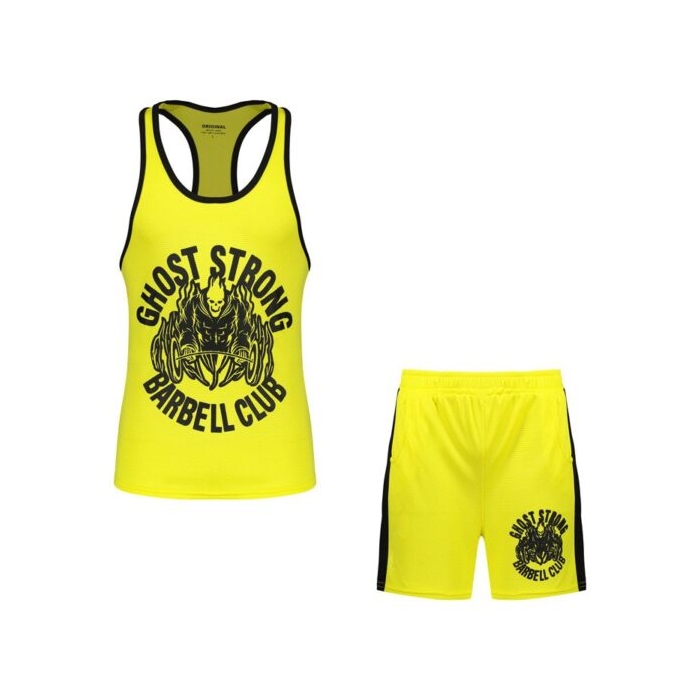 ست رکابی و شلوارک ورزشی مردانه باربل مدل PY-GHOST زرد