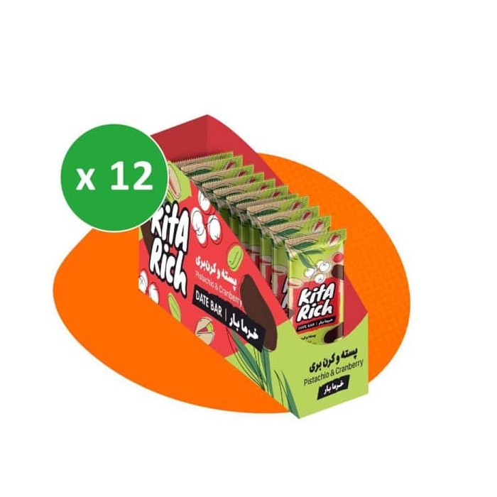 پکیج خرما بار پسته و کرن بری کیتاریچ ۲۵ گرمی بسته ۱۲ عددی