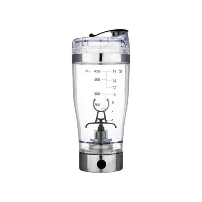 جنس: بدنه پلاستیک فشرده مرغوب ABS و استیل ضد زنگ شیکر برقی شارژی عاری از هرگونه مواد سمی (BPA FREE) ابعاد: 6*9*20 سانتی متر ظرفیت: 0.45 لیتر 100 درصد ضد نشت دارای بدنه مدرج به واحد میلی متر رنگ بدنه: شفاف وارداتی (ساخت کشور چین) دارای درب ضامنی و پیچی بدون نشت دارای دسته جهت حمل راحت و آسان عملکرد با باطری شارژی دارای کابل شارژ مناسب شیک انواع مکمل و پروتئین و … مناسب برای ورزشکاران و عموم قابل استفاده در منزل و مسافرت (قابل حمل) سرعت چرخش: 11000 تا 16000 دور بر دقیقه مدت زمان شارژ: حدود 1 ساعت با هر بار شارژ کامل: 10-15 بار امکان استفاده کامل قابل شستشو (جدا شدن موتور از بدنه) دارای پکیج بسته بندی (مناسب هدیه)