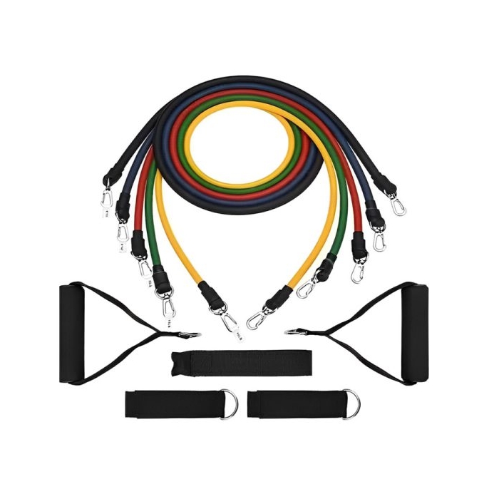کش پنج رشته بدنسازی جنس: کش لاتکس با مقاومت پایدار طول کامل هر کش : 120 سانتی متر ( هر کش تا 1-2 متر کششانی بیشتری دارد) محتویات پکیج : پنج کش مقاومتی دو دستگیره دو پابند یک گیره پشت درب کیسه حمل دارای 5 کش با مقاومت های متفاوت: 10 پوند: 4 کیلوگرم 15 پوند: 6 کیلوگرم 20 پوند: 9 کیلوگرم 25 پوند: 11 کیلوگرم 30 پوند:  13 کیلوگرم دارای کش بسیار مقاوم با کاریبن های فلزی دارای مقاومت بالا در برابر پارگی در استفاده طولانی مدت قابل استفاده برای باشگاه و منزل قابل استفاده برای انجام انواع تمرینات ورزشی و بدنسازی قابل استفاده برای ورزشکاران امکان انجام بیش از 100 مدل حرکت منحصر به فرد