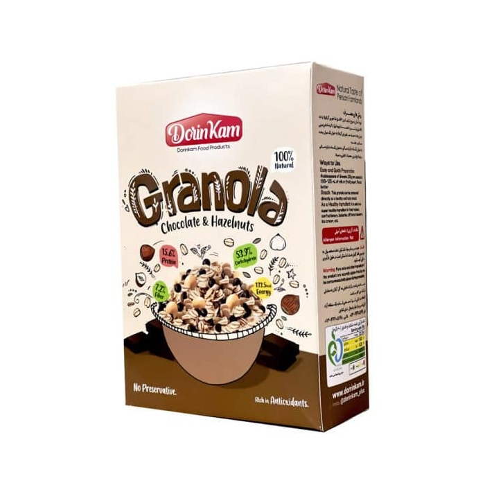 گرانولا شیشه ای درین کام طعم نسکافه و شکلات تلخ ۳۸۰ گرمی