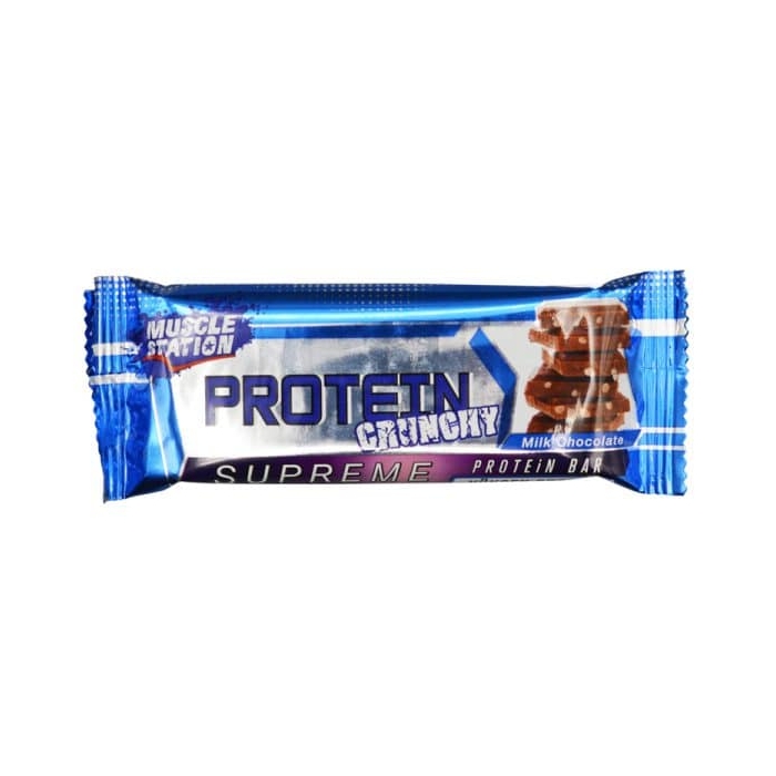 شکلات پروتئین بار ماسل استیشن مدل کرانچی یاقوتی ۴۰ گرمی