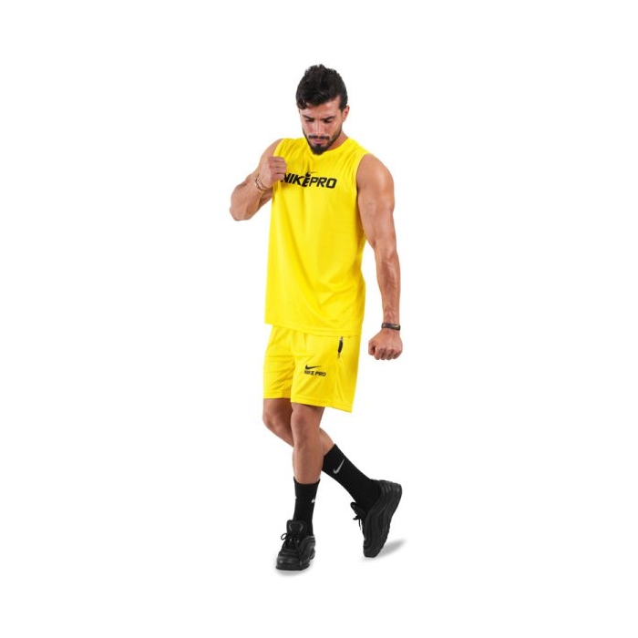 ست ورزشی مردانه رکابی و شلوارک بسکتبالی لیکرز مدل GNV-NO23 زرد