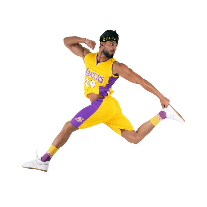 ست ورزشی مردانه رکابی و شلوارک بسکتبالی لیکرز مدل GNV-NO23 زرد