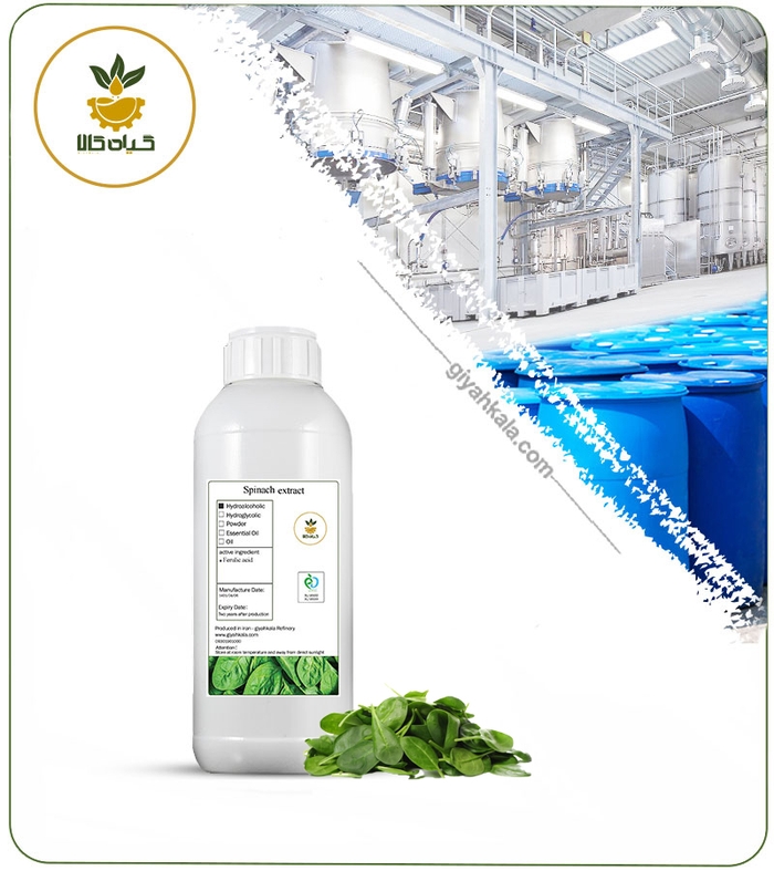 خواص عصاره اسفناج : سلامت چشم، درمان کم خونی، تمیز کردن پوست و ضد پیری، کمک به کاهش وزن، پیشگیری از سرطان سینه روش آنالیز UV، HPLC​ تولید شده از گیاهان اولیه کاملا استاندارد و ارگانیک پروسه تولید 100 درصد بهداشتی و ضد میکروبی استخراج با متدهای علمی و دانش بنیان توان تولید بالا و تامین منظم در تمام فصول سال