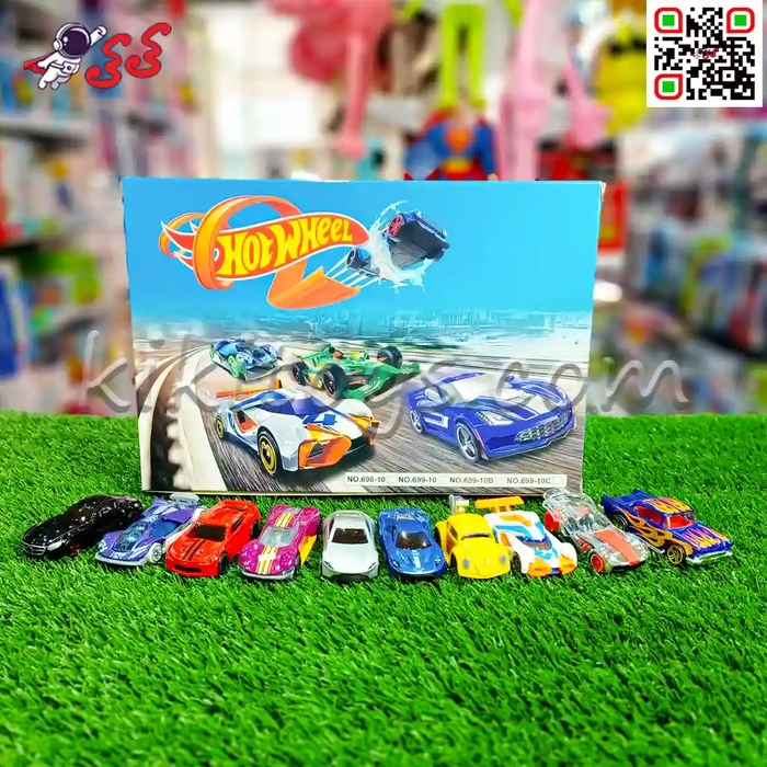 این محصول یک ست 10 عددی از ماشین فلزی طرح هات ویلز می باشد که بصورت ترکیبی از فلز و پلاستیک می باشند.توجه شود مدل ماشین ها در بسته متفاوت می باشد و مانند عکس تصویر نمی باشد.