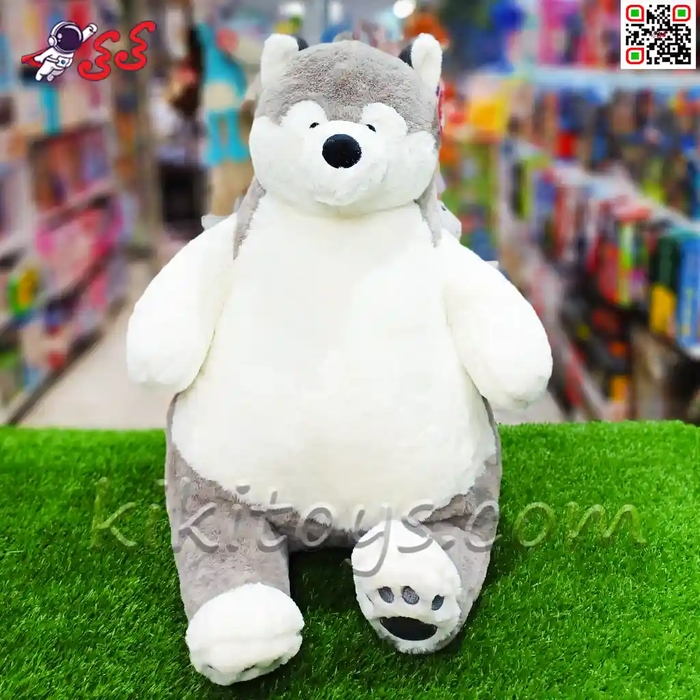 عروسک سگ هاسکی نشسته بزرگ که از الیاف و پارچه بسیار نرم و لطیف ساخته شده است و کودکان براحتی می توانند با آن بازی کنند.سگ هاسکی نشسته یک عروسک توبغلی نرم و اسباب بازی بسیار جذاب برای کودکان می باشد.