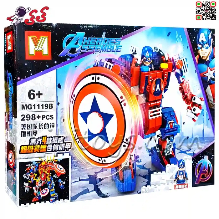 این محصول یک لگو ترکیبی از ربات تبدیل شونده کاپیتان امریکا که با برند MG به بازار عرضه شده است. این لگو دارای 298 قطعه لگو رنگی و 1 عدد مینی فیگور لگویی ادمک کاپیتان امریکا برای بازی و سرگرمی کودکان و نوجوانان می باشد.