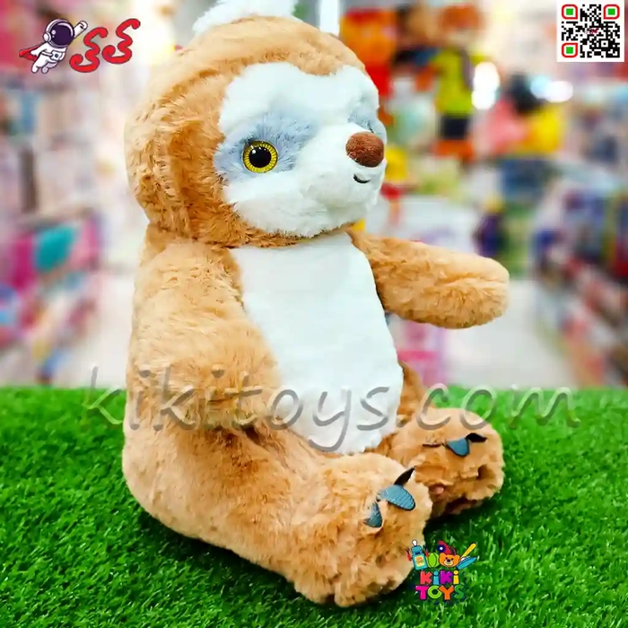 عروسک پولیشی تنبل چشم رنگی که از الیاف و پارچه بسیار نرم و لطیف ساخته شده است و کودکان براحتی می توانند با آن بازی کنند.